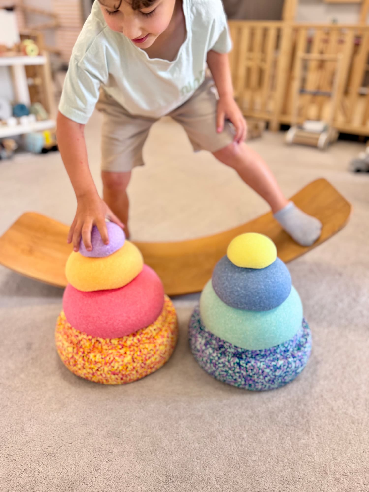 Zestaw deska Gakker i krążki Stapelstein Summer Rainbow to połączenie ruchu, kreatywnej zabawy i rozwoju motorycznego. Idealny dla dzieci w wieku 1-6 lat, do bezpiecznej zabawy w domu i nauki przez ruch.