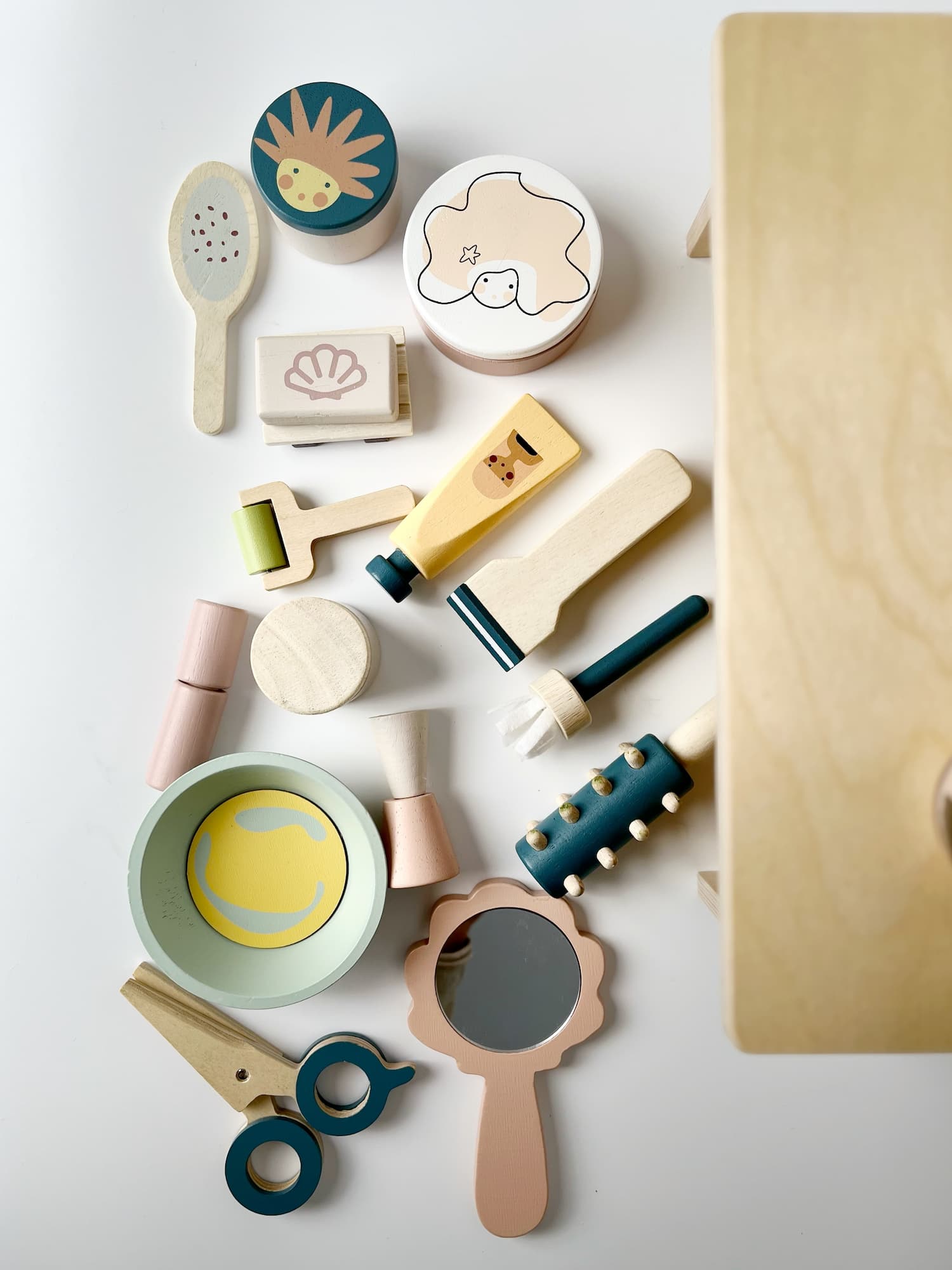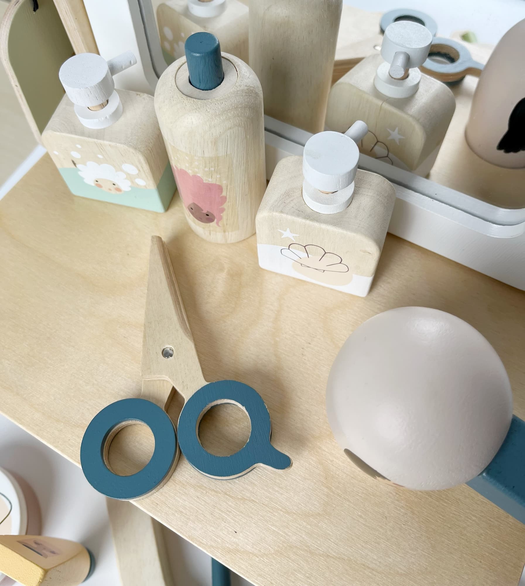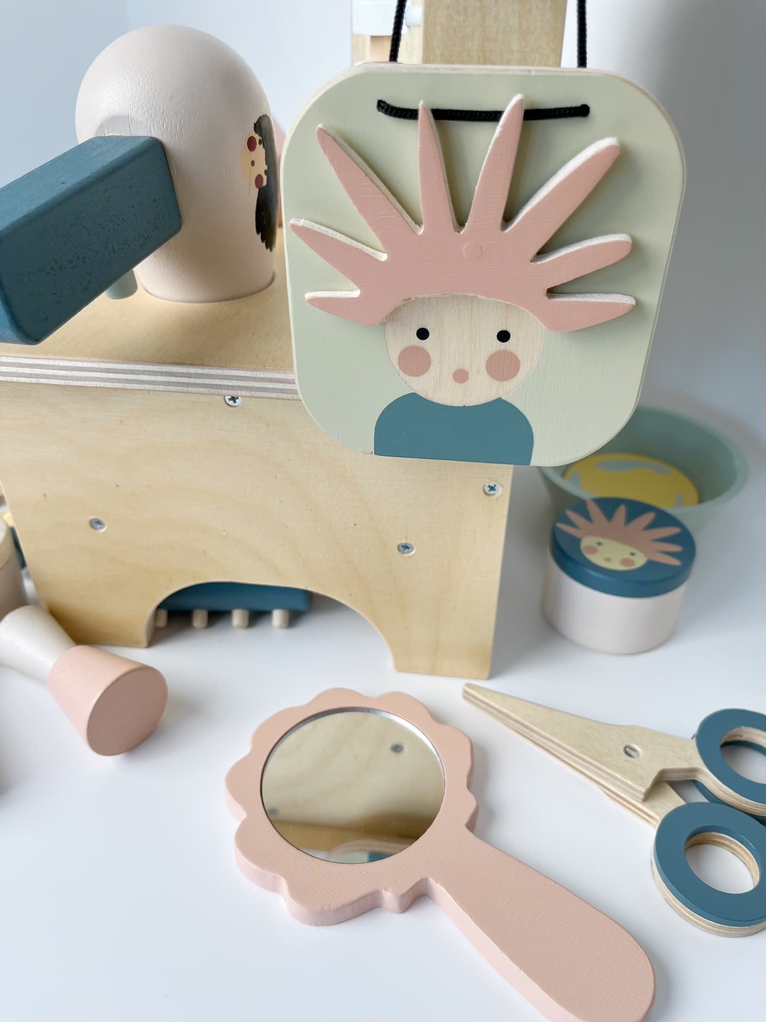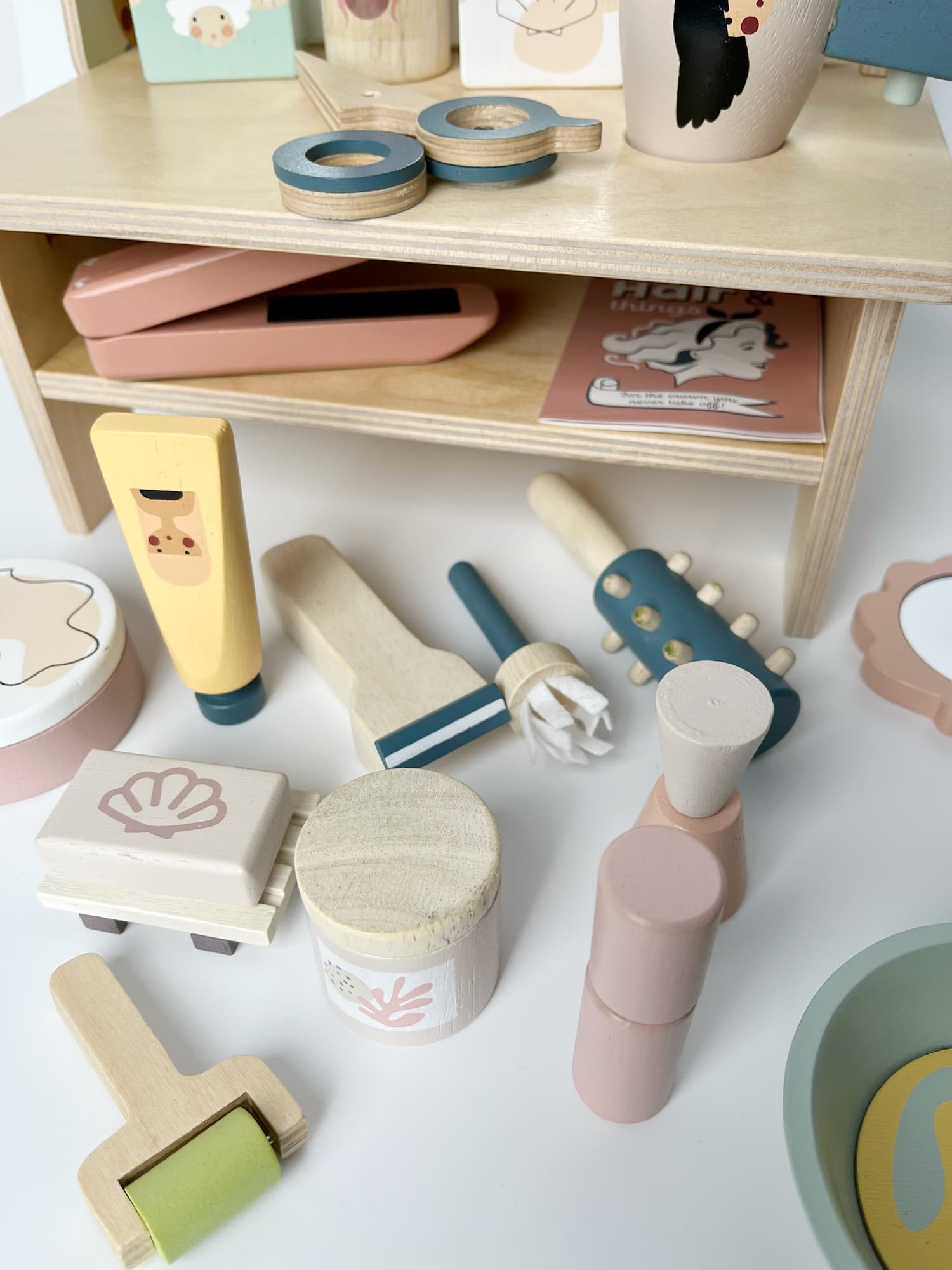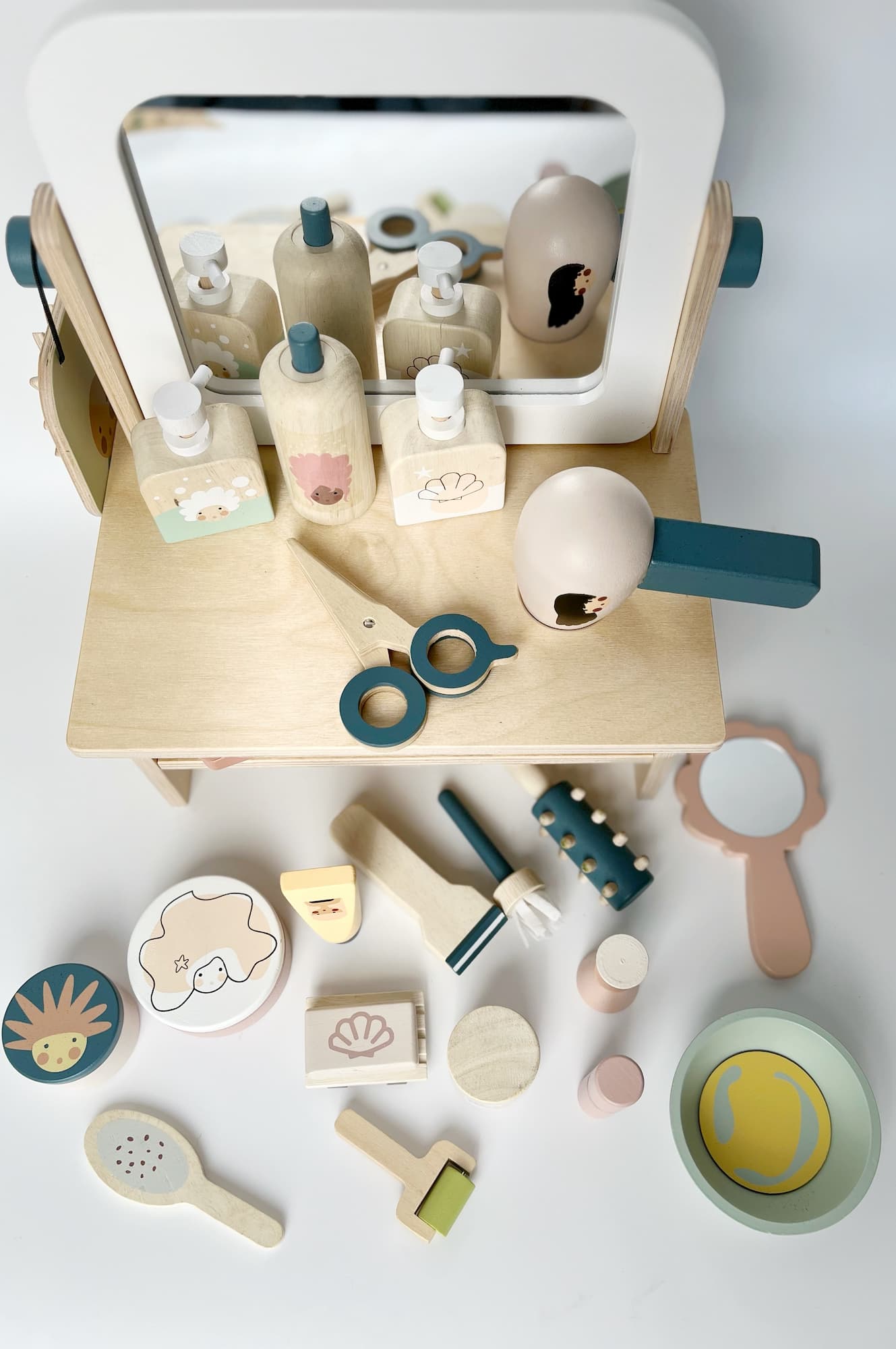 Drewniany zestaw Salon fryzjerski i SPA Tender Leaf Toys do wypożyczenia – zabawa w role, pielęgnację i kreatywne zajęcia.